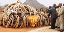 Las autoridades queman el marfil capturado en Lusaka, Zambia, como ya han hecho en varios países africanos.